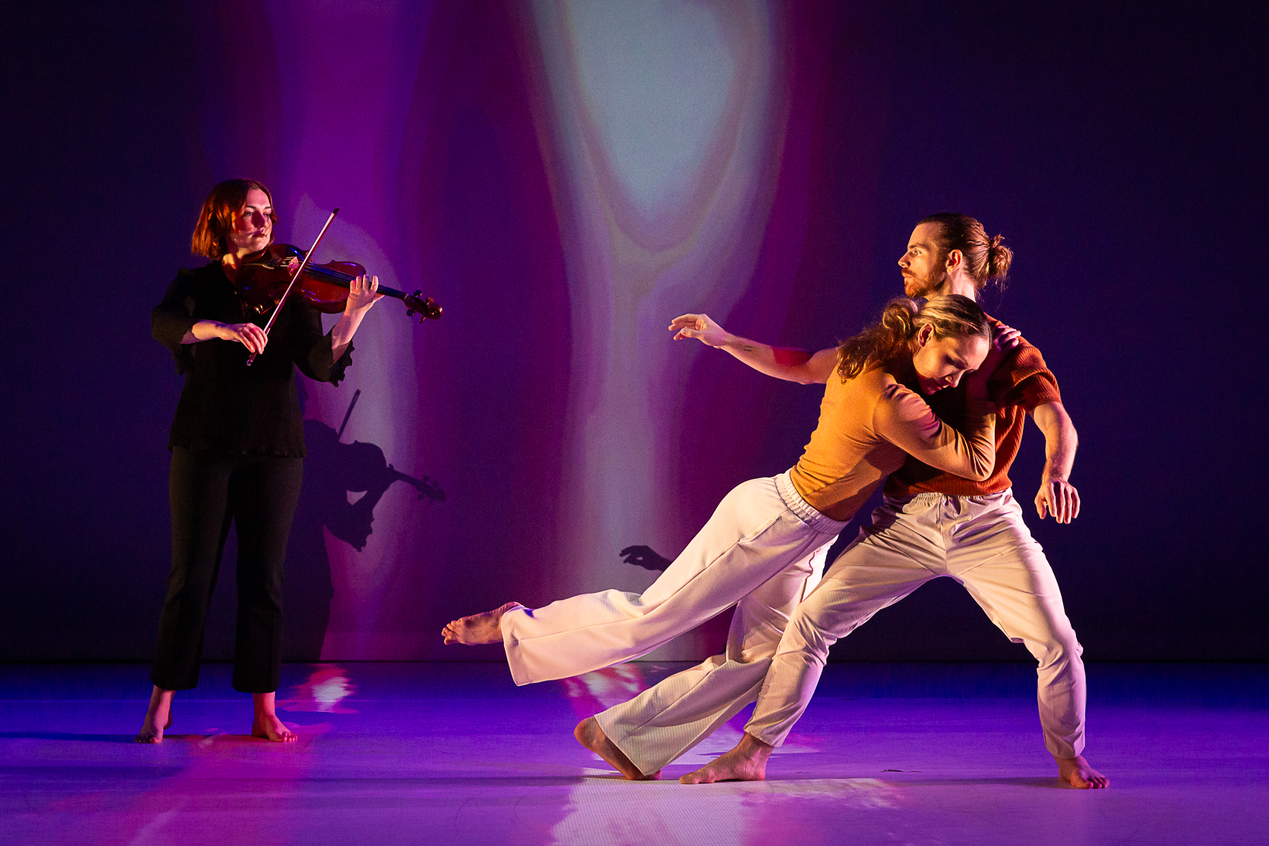 Meeting of Minds, the opening work of the evening, is a collaborative music and dance performance that explores the neural dynamics of social interaction by tracing a relationship’s transformation from polarization to mutual understanding. The premiere featured choreography by Andy and Dionne Noble and a newly composed score by Anthony Brandt that is comprised of 10 short movements for two string quartets – one pre-recorded, and the other live. Performed by Astrid Nakamura and Nanki Chugh (violins), Molly Wise (viola) and Christopher Ellis (cello), and danced by Lauren Serrano and Tyler Orcutt, Meeting of Minds integrates music, dance, neuro-engineering and artificial intelligence to explore the inner workings of the human brain. The dancers wore EEG caps during their performances to measure electrical activity in their brains as they move in sync, perform intricate partnering, and execute complex choreography. The projection design by Badie Khaleghian will respond to the live EEG data with abstract visual representations of the brain’s plasticity. Meeting of Minds is the continuation of a pioneering partnership between Musiqa, NobleMotion, Jose Luis Contreras-Vidal and the University of Houston BRAIN Center. The first collaboration – LiveWire (January 2022) was wildly successful in Houston and reprised at the 2022 International Workshop on the Neural and Social Bases of Creative Movement at Wolf Trap Foundation for the Performing Arts in Virginia. “A sneak peek of this research was recently presented at TEDx Talk and we are excited to premiere the full work for Houston audiences,” states Andy Noble. “Our team is employing the performing arts to better understand the creative brain in action.”