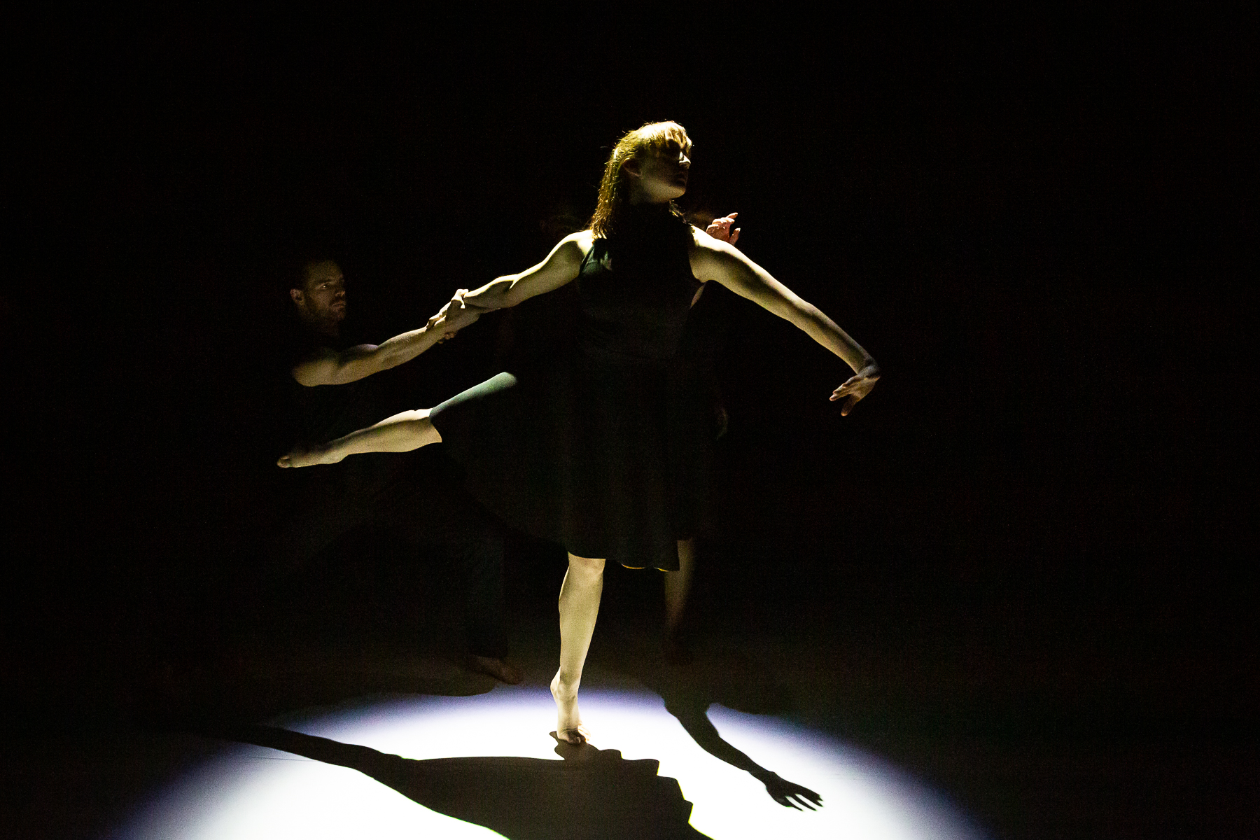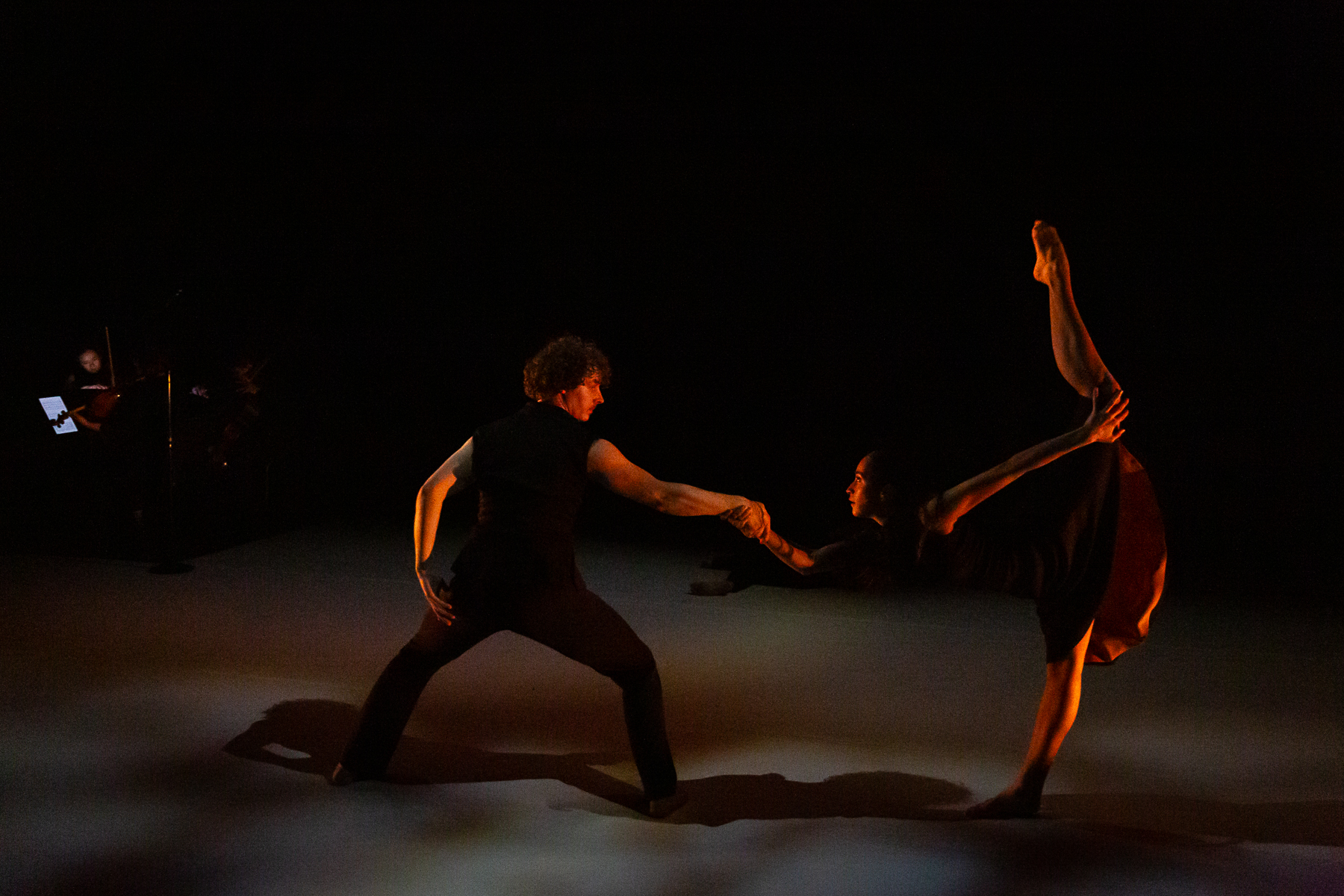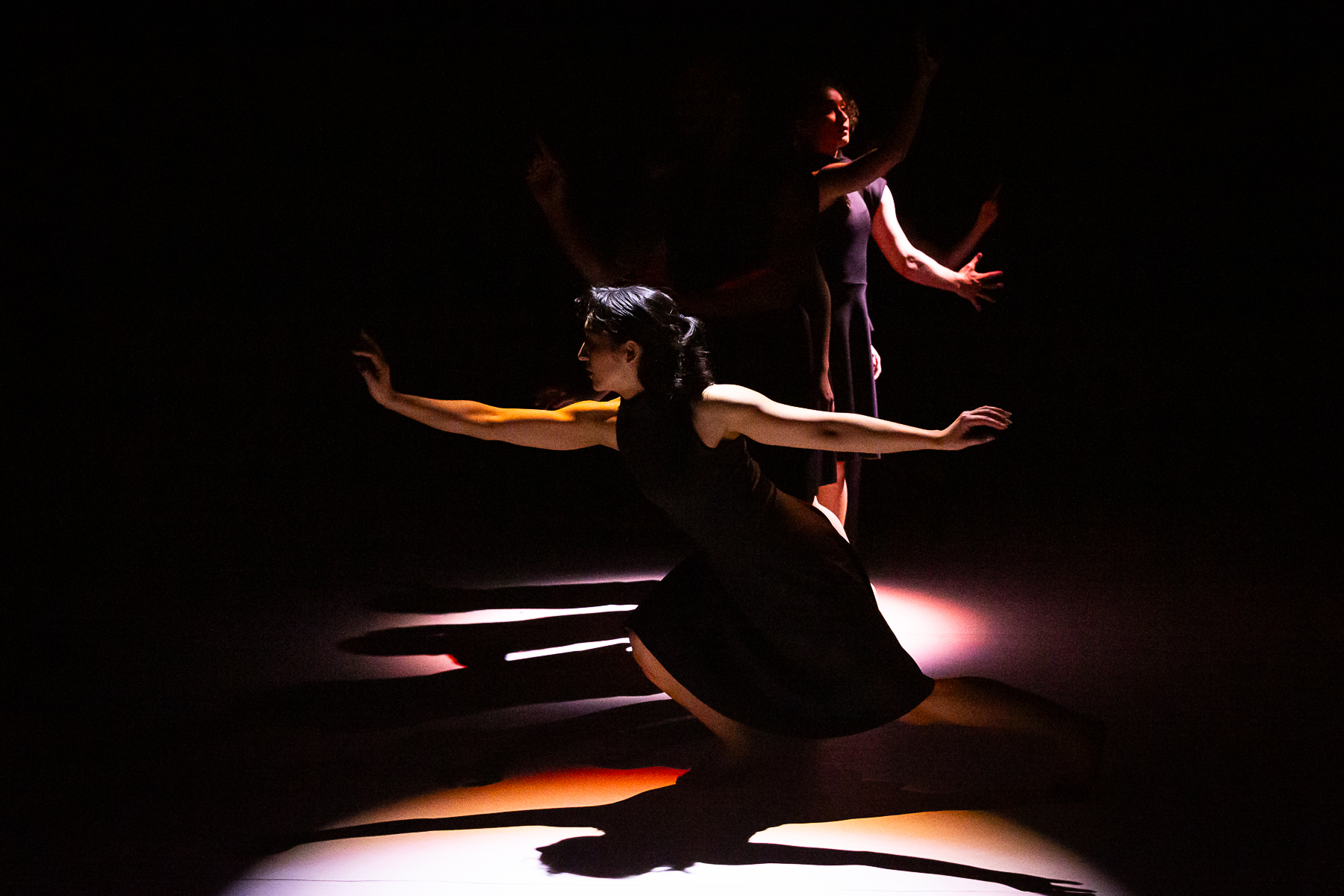 The Telling captures the moment right before a challenging confession. An ensemble of dancers falls, twists, and flails through the space, “stumbling over their thoughts” in anxiety as the truth is released. The energetic music score is composed by Marcus Karl Maroney and performed by musicians Nakamura, Chugh, Wise, and Ellis. “It’s mostly about the nervousness and hesitation about being vulnerable. For me, the work doesn’t ‘say’ what the aftermath of the telling is… it is about the energy immediately before or during,” states Maroney. Featured NobleMotion dancers included Wesley Cordova, Rachel Culver, LaRodney Freeman, Sheena Kapila, Tyler Orcutt, Jacob Regan, Lauren Serrano, and Angelica Villa.