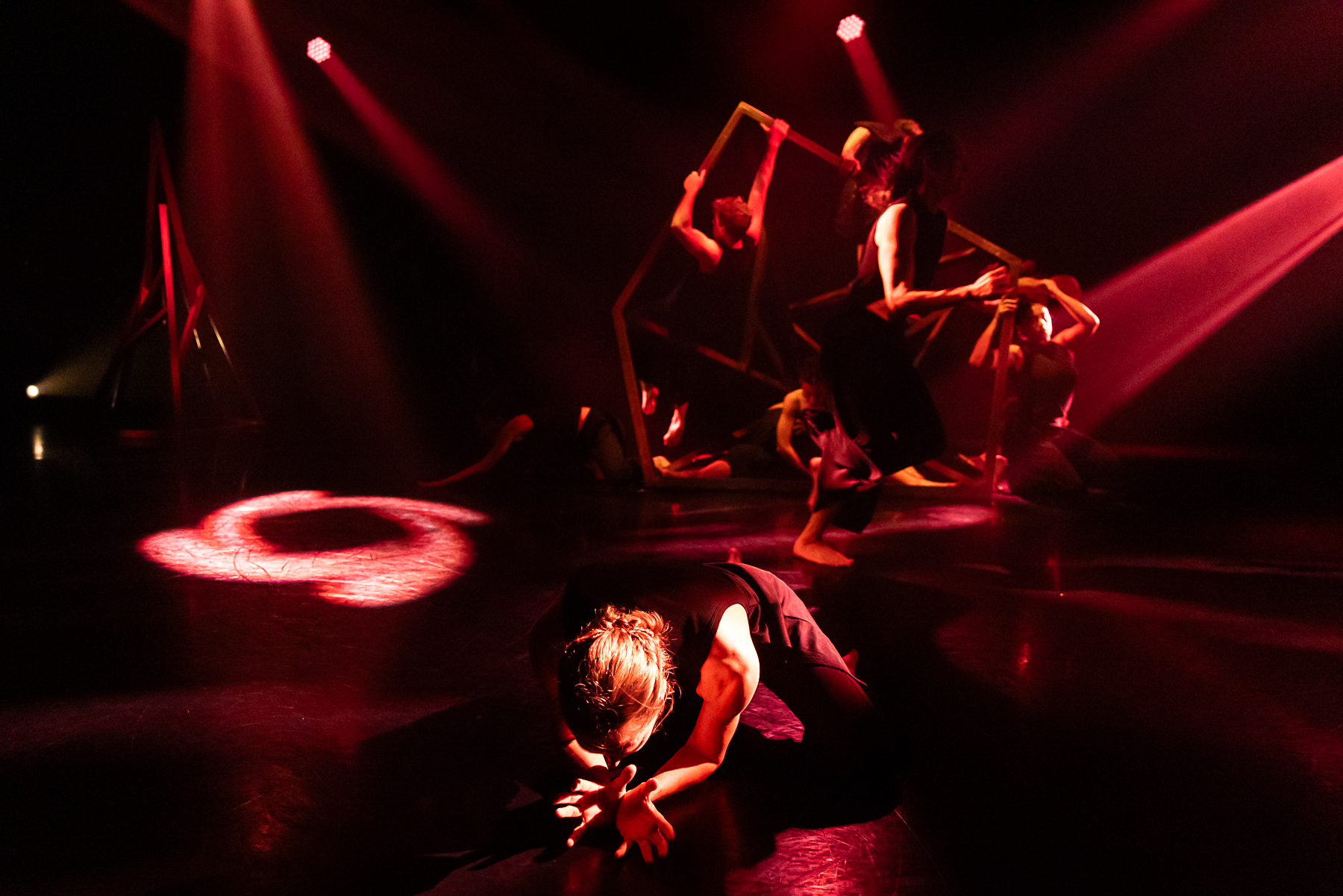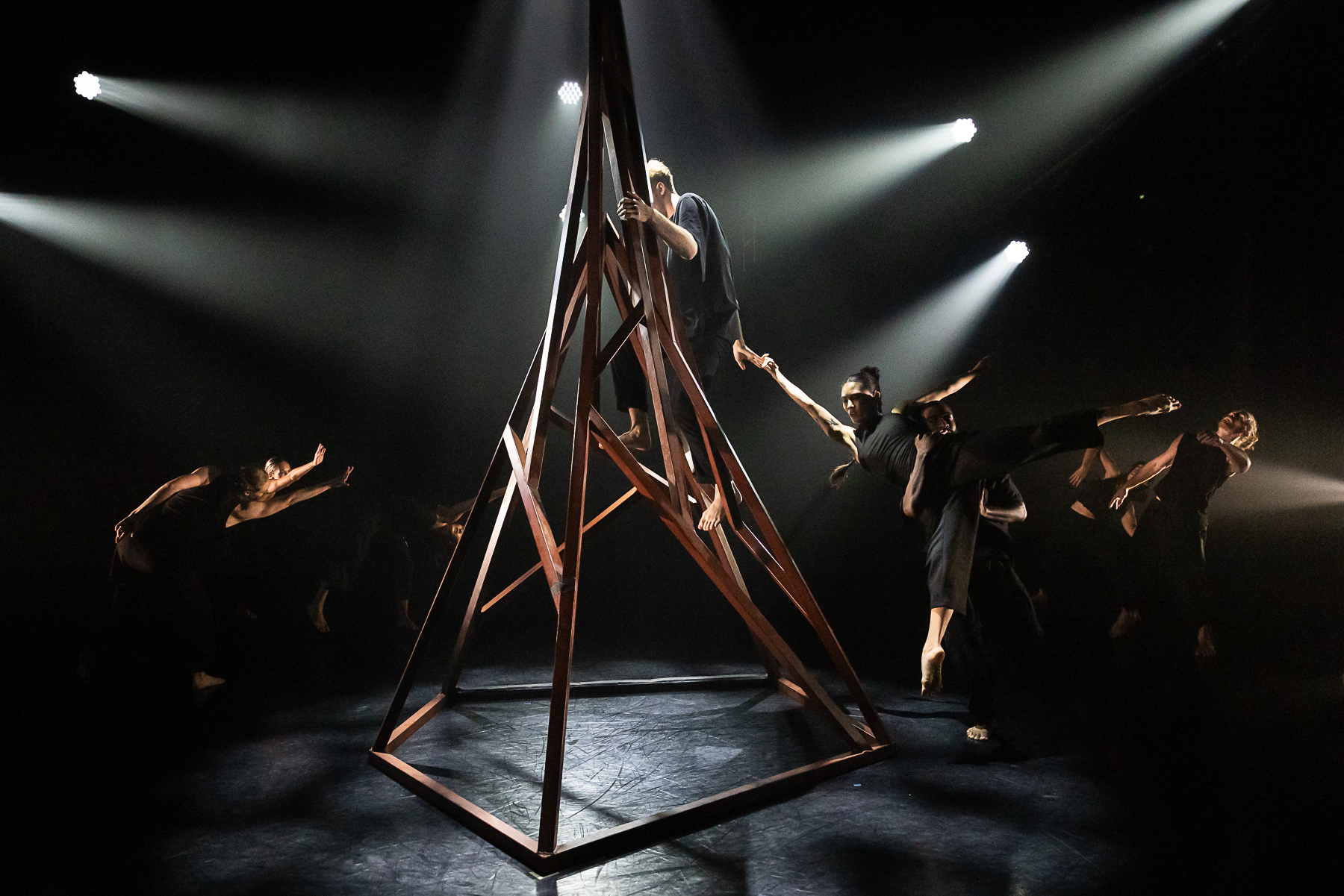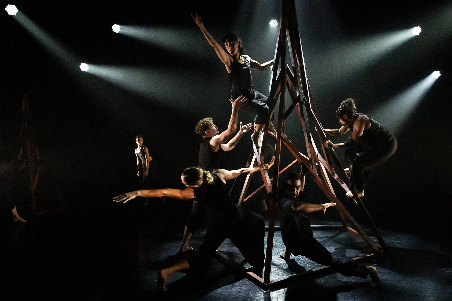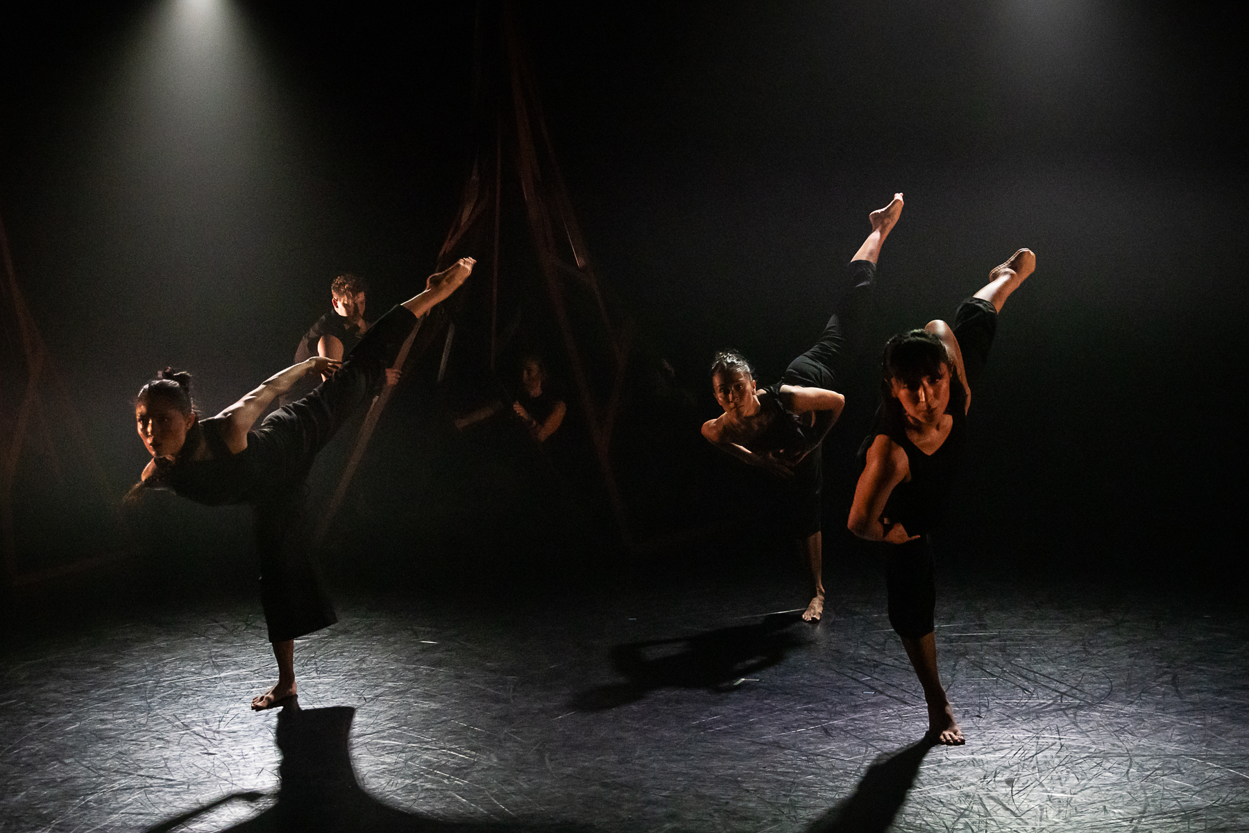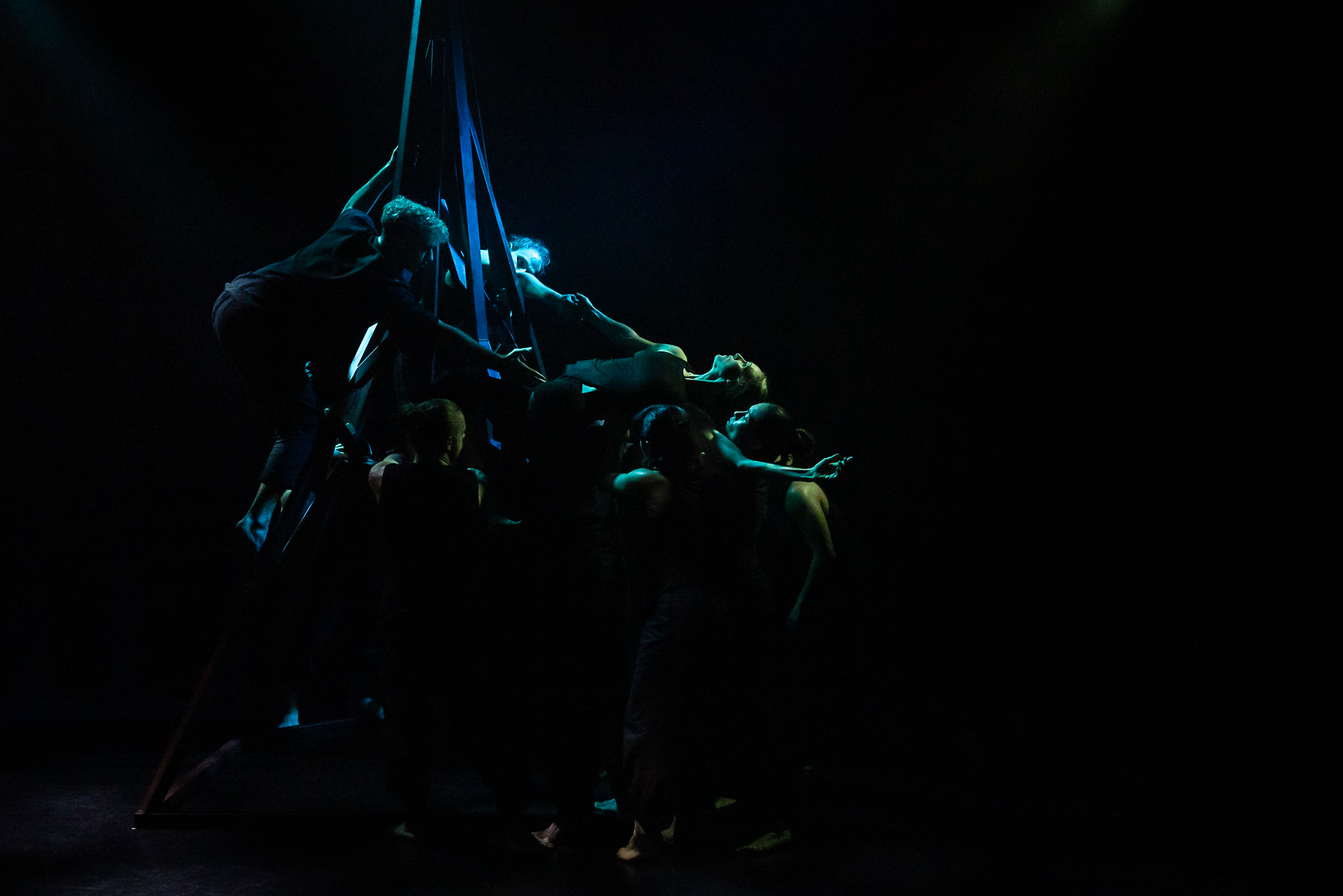 NobleMotion entered season 16 with Stalactites, a mysterious new evening of dance theater that premiered at the MATCH in late August 2024. Set in a futuristic primal society, Stalactites draws inspiration from Plato’s allegory of the cave as a response to current advances in AI technology. The theater is transformed into an industrial cave with climbable architectural structures designed by Jared Doster. The light grid is lowered into the performance space allowing light designer Bryan Ealey to shape the world as the dancers perform above the fixtures. And a new hour-long music score by Travis Lake haunts and renders beautiful a hollow world full of possibility. Stalactites is a physical and evocative evening-length performance that offers a glimpse into one possible future of human “progress.”